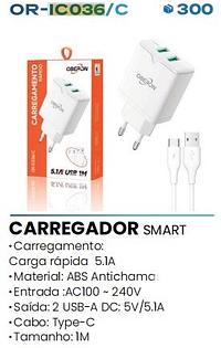 CARREGADOR SMART Cabo: Type-C