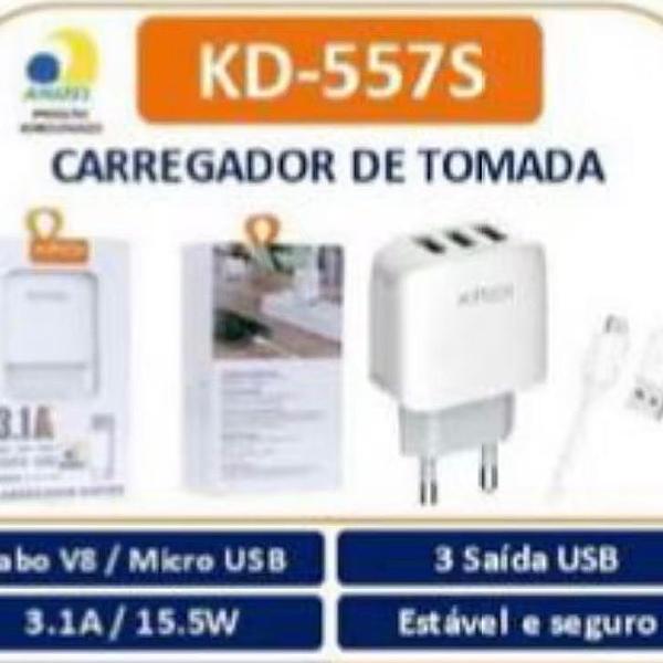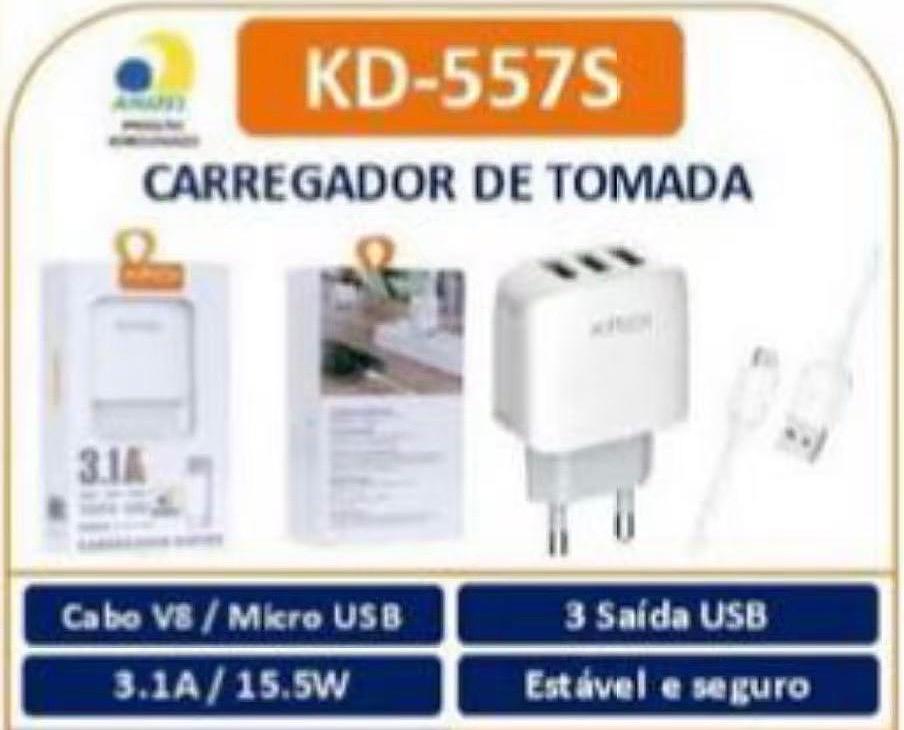 CARREGADOR DE TOMADA Ca bo VS / Micro USB 3.1A / 15.5W 3 Saída USB