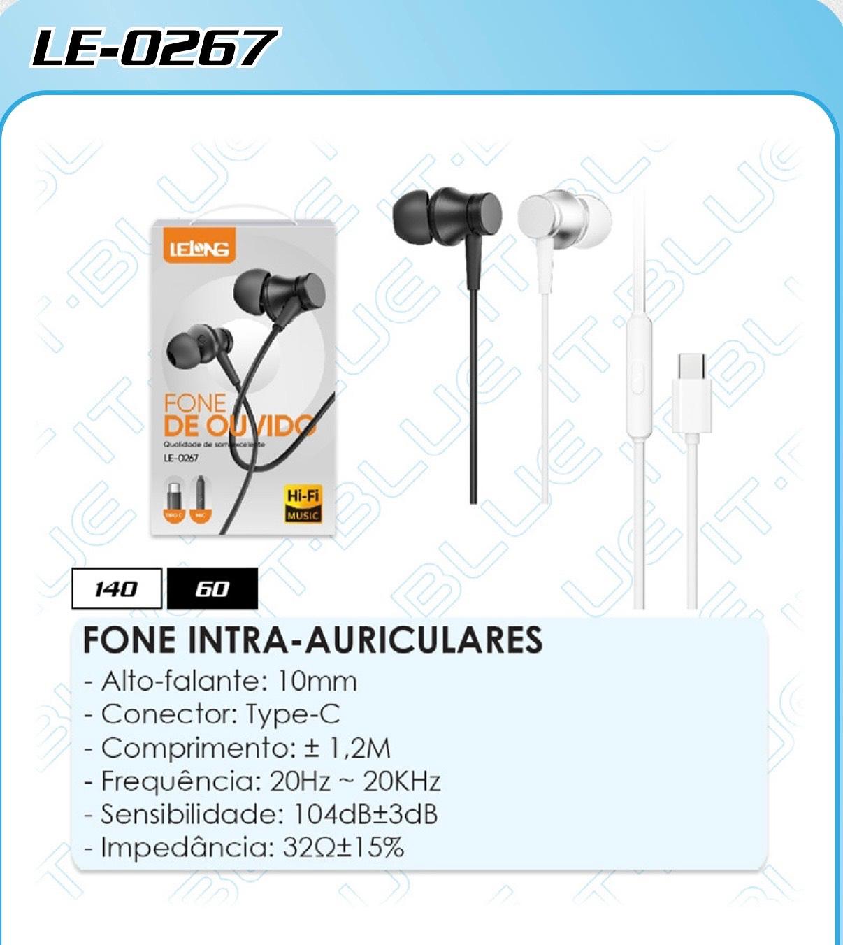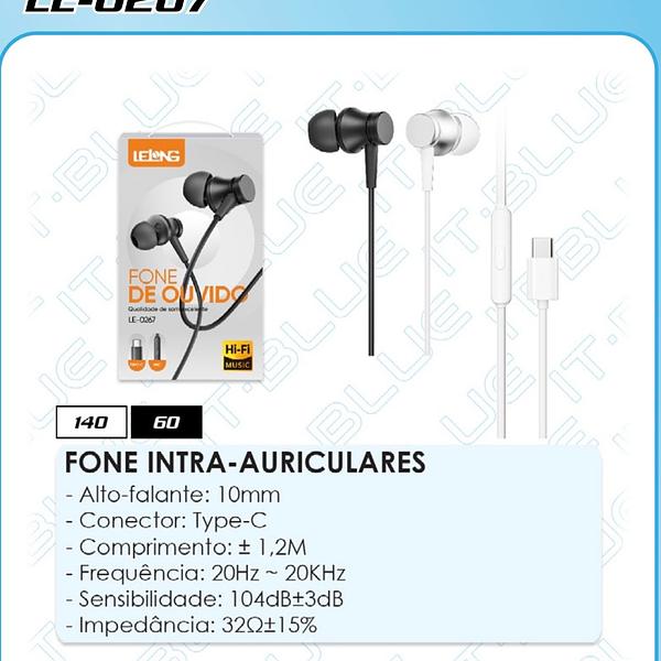 FONE INTRA-AURICULARES Saída de áudio Type-C