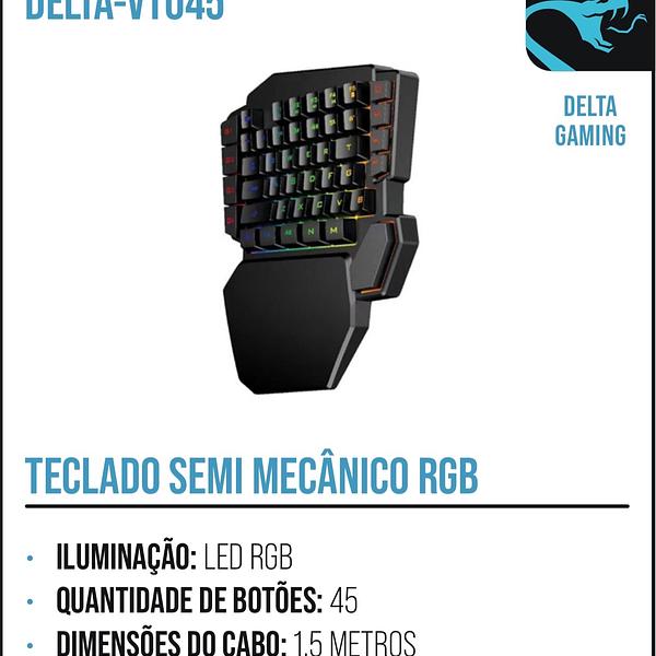 TECLADO SEMI MECÂNICO RGB• QUANTIDADE DE BOTÕES: 45 • DIMENSÕES DO CABO: 1,5 METROS